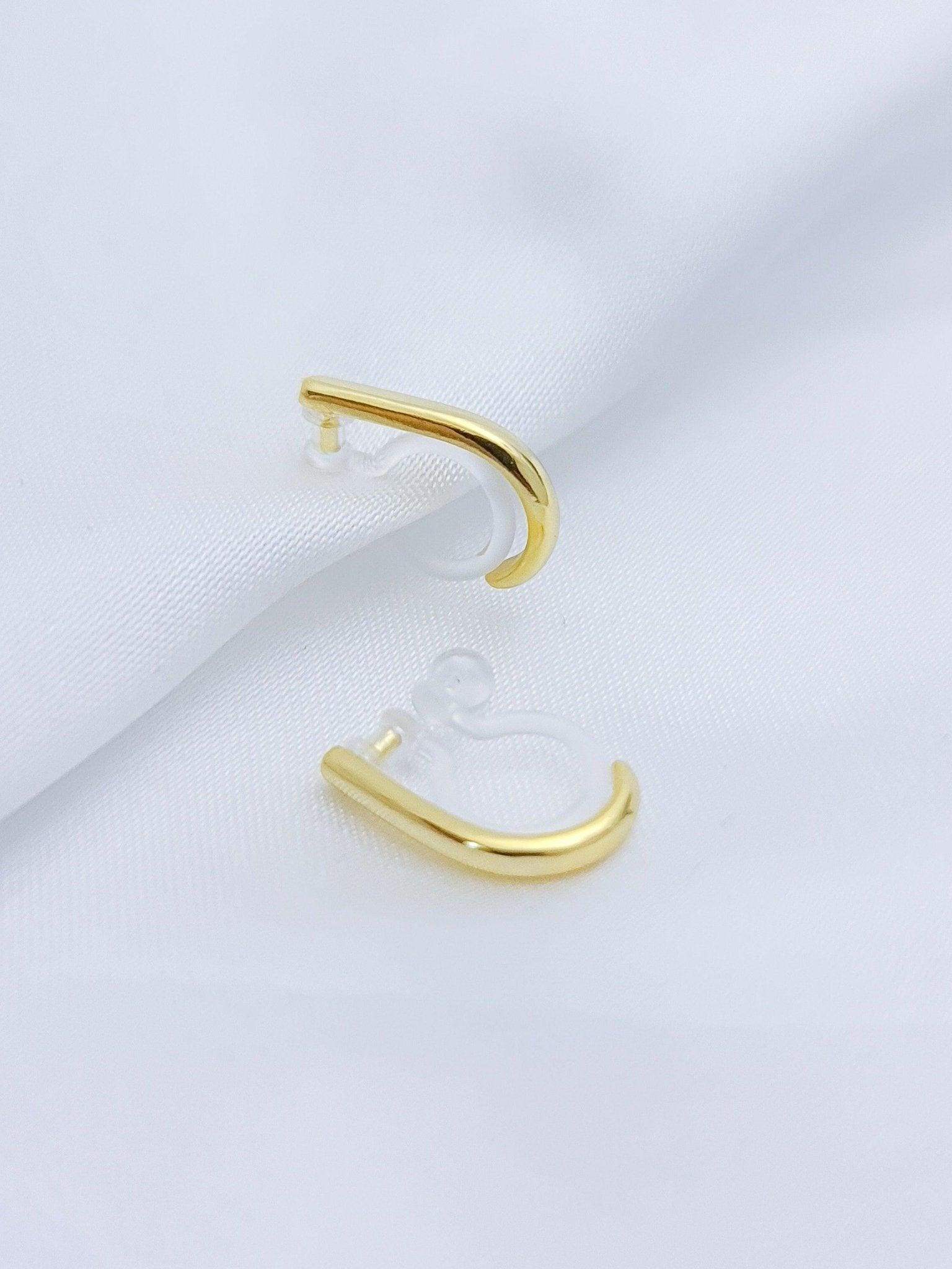 Die Clip-Ohrringe "Julia", gefertigt aus 925er Sterlingsilber und vergoldet mit 18K-Gold, sind sicher und leicht anzulegen und abzunehmen. Platziere sie einfach oben am Ohr und schiebe sie sanft Richtung Lappen.