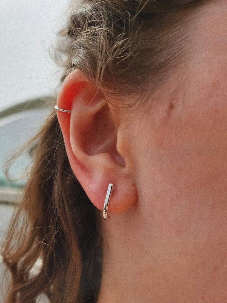 Die Clip-Ohrringe "Julia", gefertigt aus 925er Sterlingsilber, sind sicher und leicht anzulegen und abzunehmen. Platziere sie einfach oben am Ohr und schiebe sie sanft Richtung Lappen.
