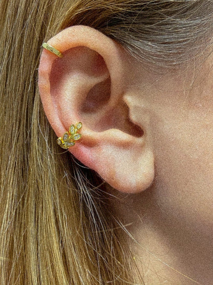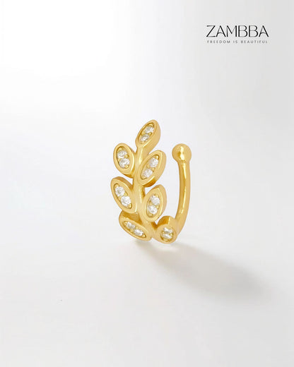 Inspiré par la nature, avec des détails délicats en forme de feuilles ornées de zircons, ce bijou en argent 925 ou avec un plaquage or 18 carats s'ajuste confortablement à votre oreille sans nécessiter de perforations.