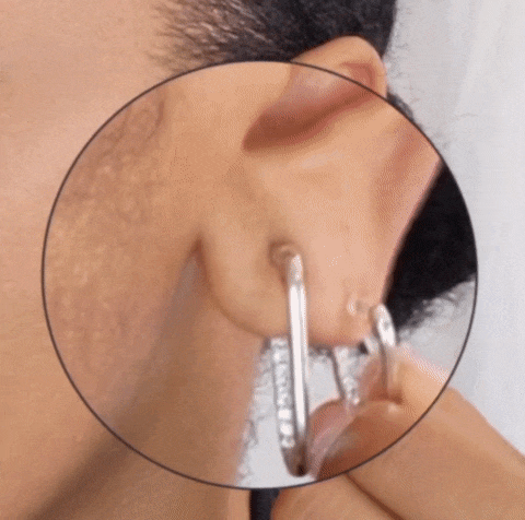 Desliza tus pendientes delicadamente por el lóbulo. No estires demasiado. Mucha presión puede romper o deformar el clip.